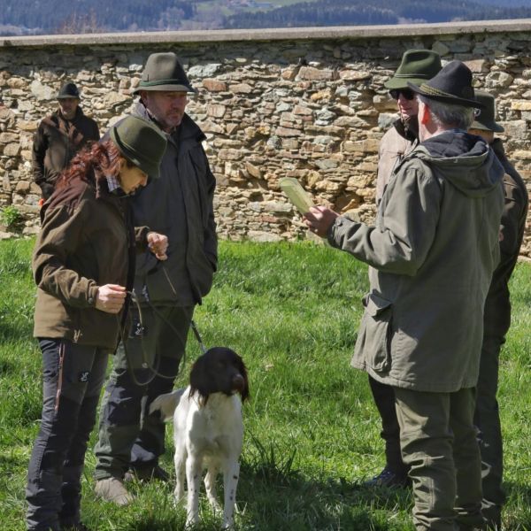 Nach 10 fleißigen Sonntagnachmittagen war es wieder soweit: der Hundekurs Abschluss stand an. Die 14 Mensch-Hund-Gespanne (darunter acht verschiedene Hunderassen) haben in den vergangenen Wochen viel trainiert und wichtige Schritte in Richtung fermer Jagdhunde getan. Neben dem Ziehen von Schleppen und der Arbeit im Wasser stand ein Nachmittag auch ganz im Zeichen des Nachsuchens.