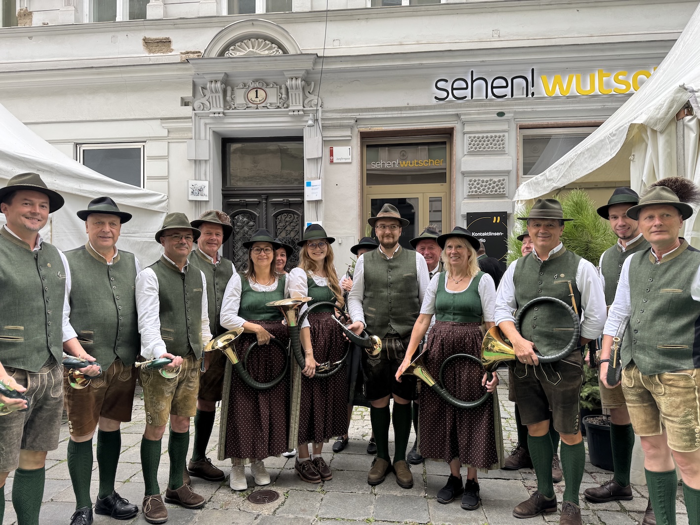Am Stand des Steirischen Jagdschutzvereins durfte sich heuer der Jagdbezirk Hartberg-Fürstenfeld besonders in Szene setzen, dazu eingeladen war auch der Zweigverein Vorau. Am Sonntag ging es also mit einem Bus von Vorau nach Graz, wo die große Jagdhornbläsergruppe unter der Leitung von Joachim Hammerl ihr Können zeigen durfte. Die Gruppe, die aus den Vorauer und den Eichberger Jagdhornbläsern besteht, durfte dabei sogar den Landeshauptmann, den Landesjägermeister und den Präsident des Jagdschutzvereins musikalisch begrüßen.