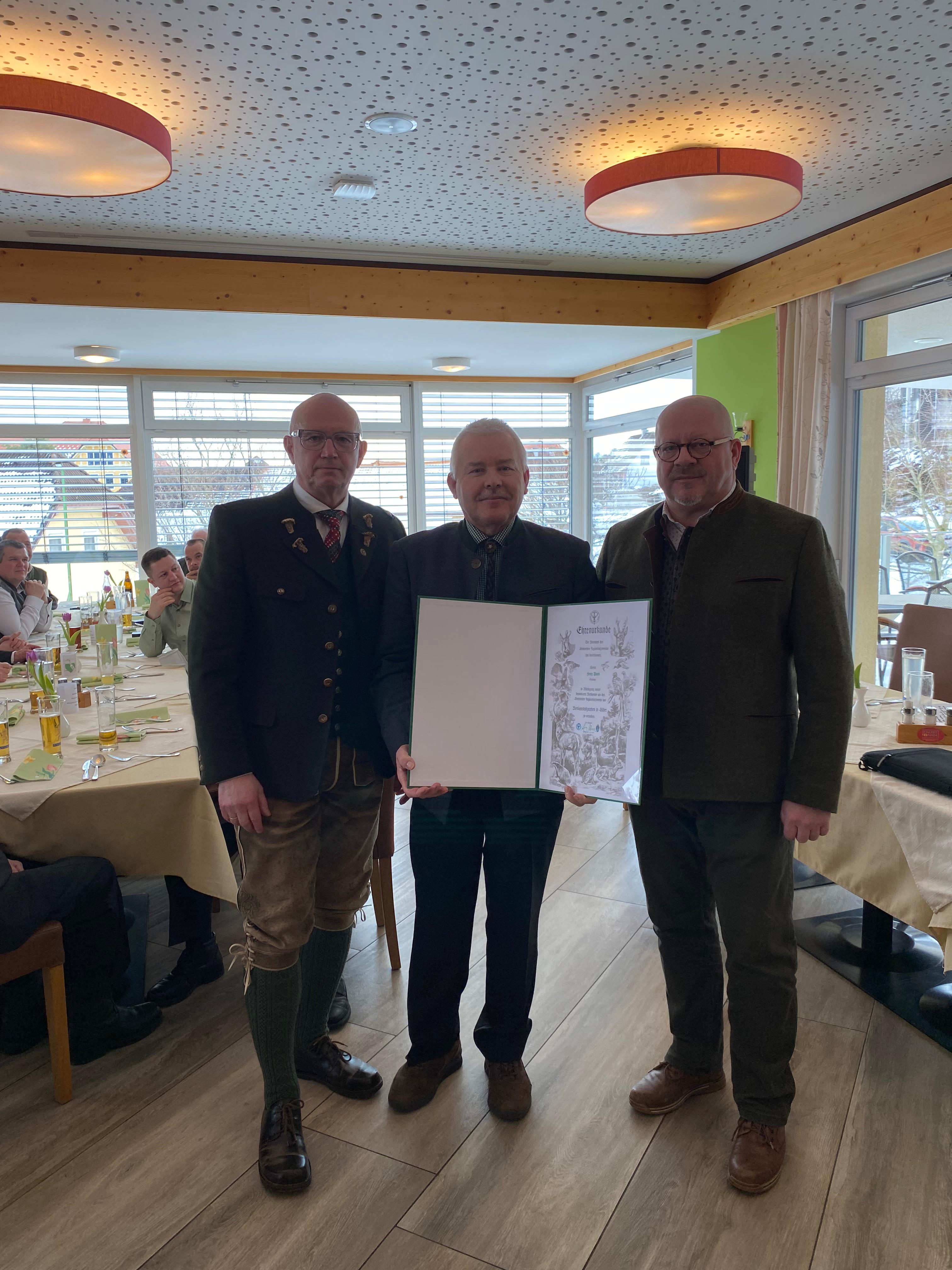 Zu den Tagesordnungspunkten zählten unter anderem der Tätigkeitsbericht des Obmanns Franz E. Unterberger sowie die Berichte der Referenten und Einsatzleiter, die einen umfassenden Rückblick auf das vergangene Vereinsjahr gaben. Ein besonderer Höhepunkt der Versammlung waren die Ehrungen verdienter Mitglieder. Besonders hervorzuheben ist Franz Plank, dem für seine langjährige und engagierte Tätigkeit im Zweigverein das Verdienstabzeichen in Silber verliehen wurde. Ebenso wurden jene vier Aufsichtsjäger geehrt, die sich letztes Jahr der Aufsichtsjägerprüfung stellten.