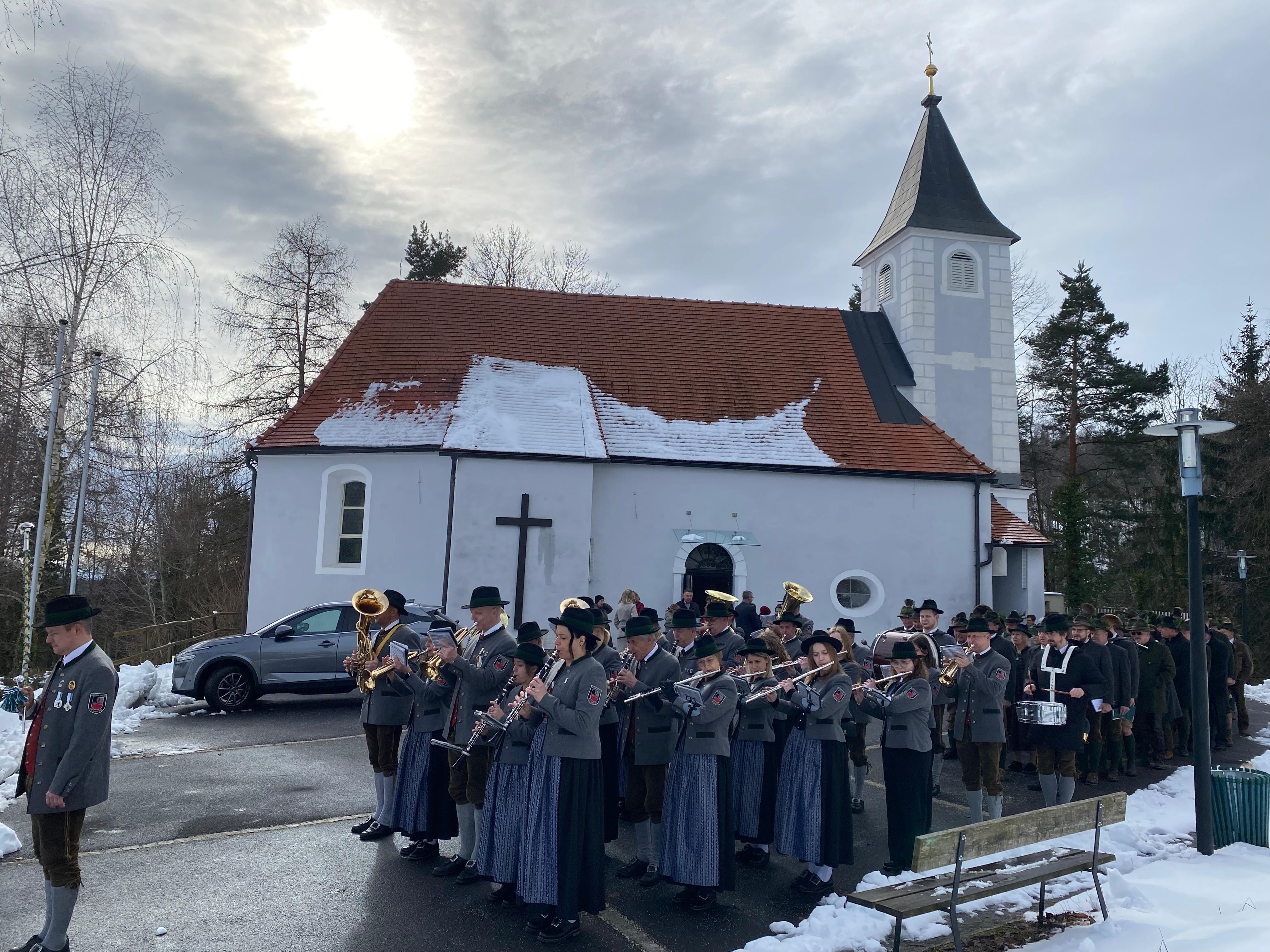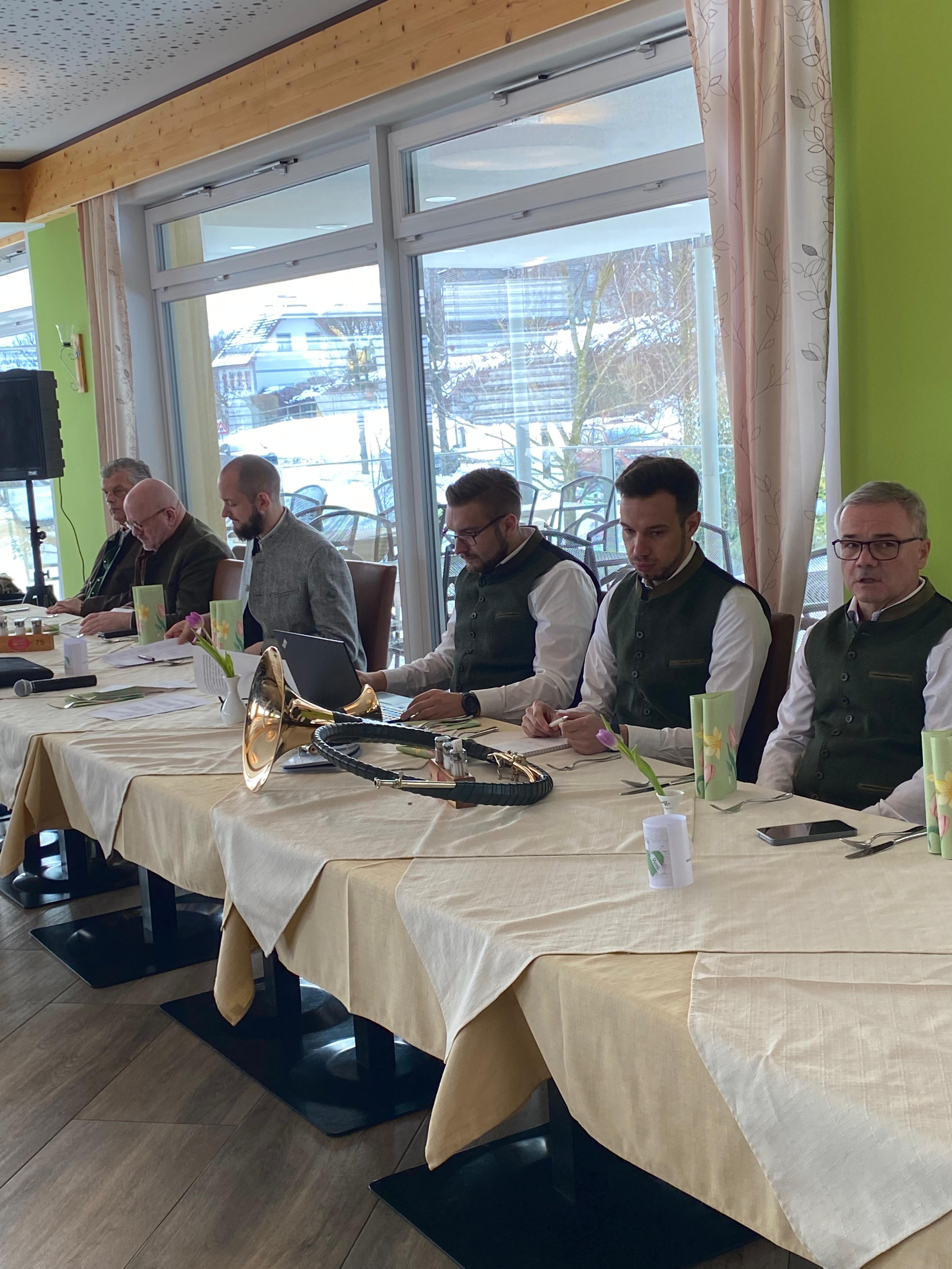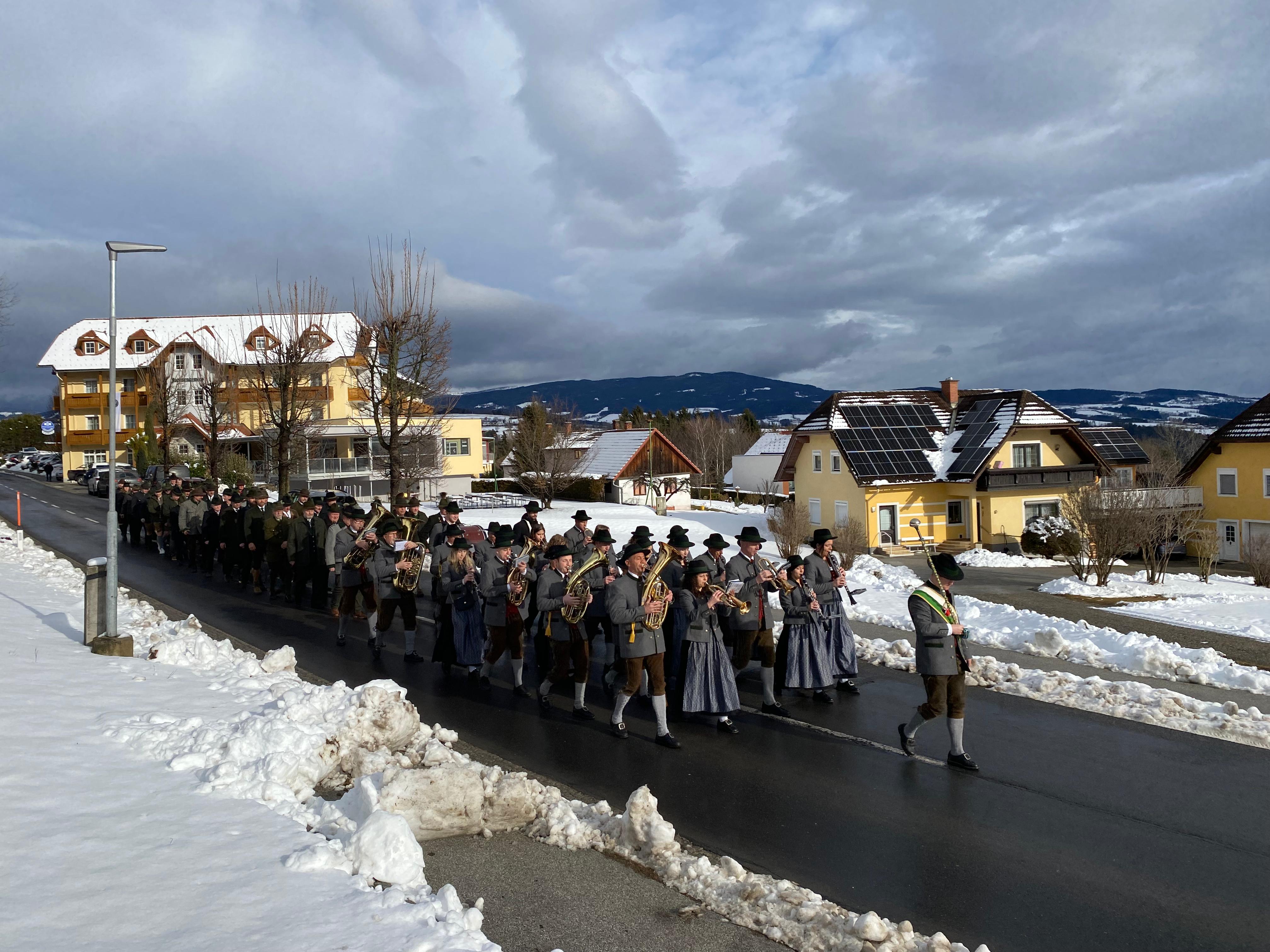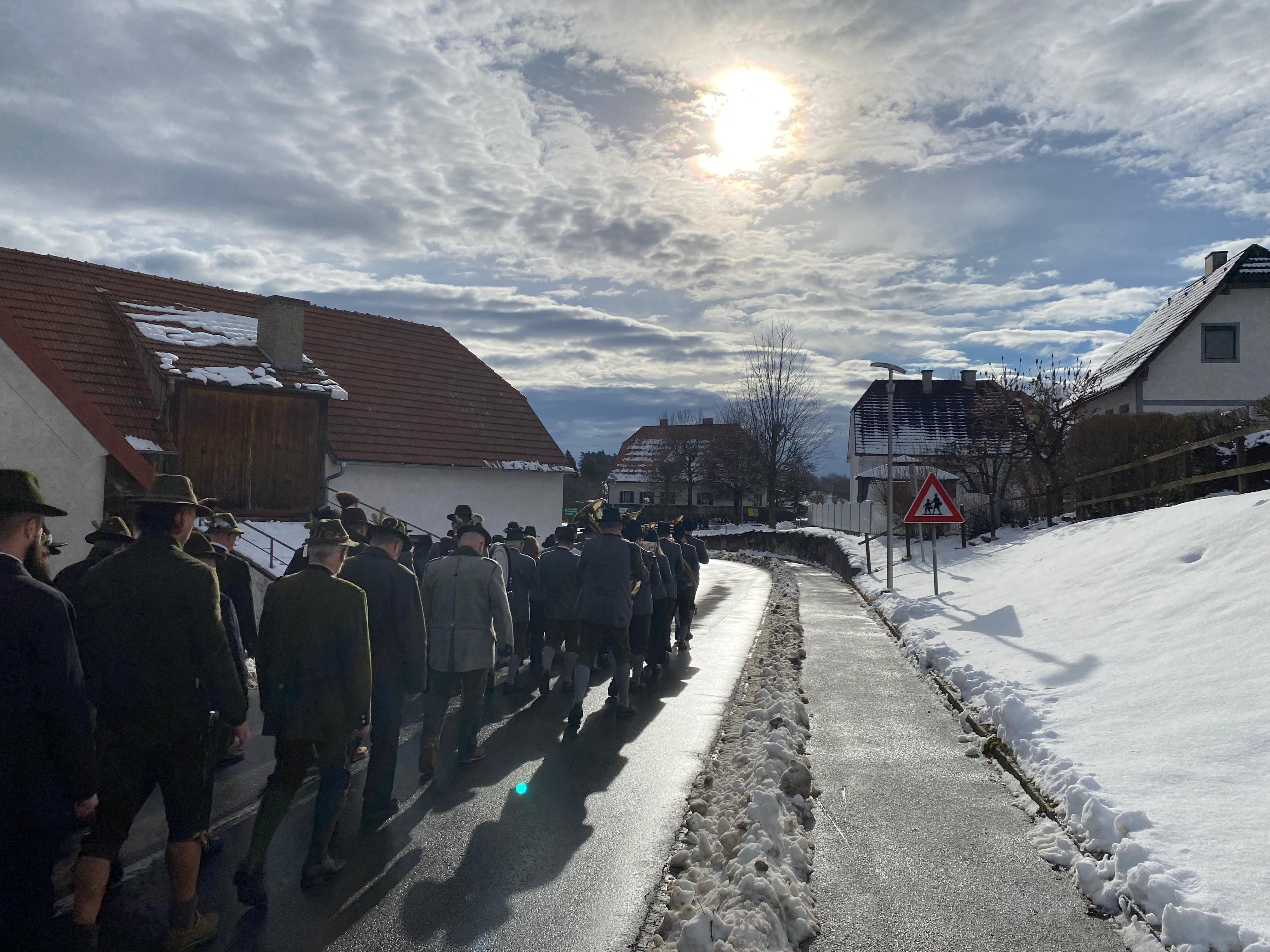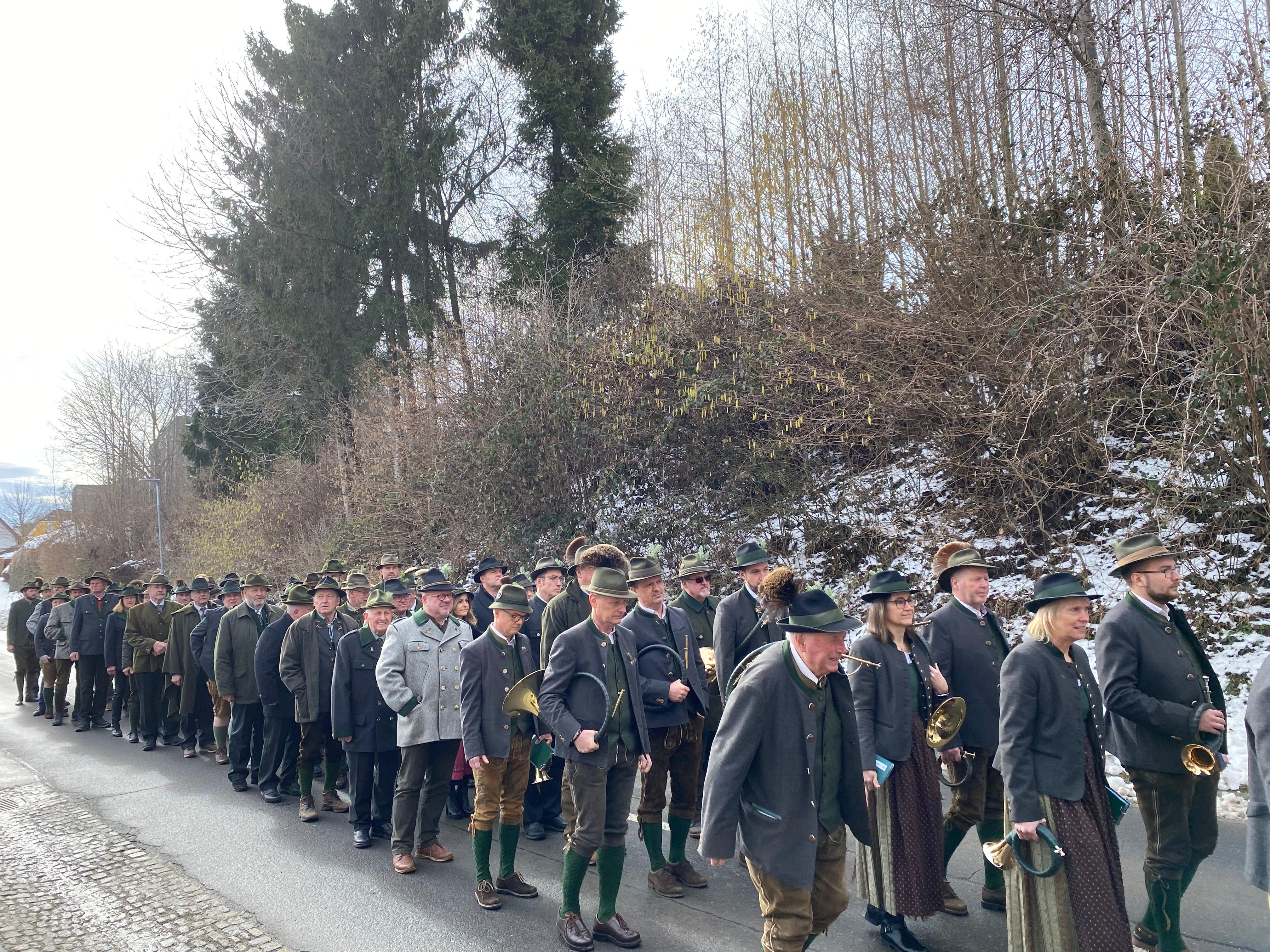 Im Anschluss an die Hl. Messe marschierte die Jägerschaft, begleitet von der Musikkapelle Eichberg, von der Kirche zum Eichbergerhof, wo der offizielle Teil der Jahresversammlung stattfand.